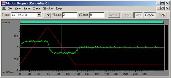 You can see that the position error plot goes off scale because we have not set the scaling yet. Adjust the Y Scale until you get the view you want.