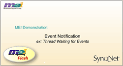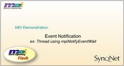 Event Notification is a way to communicate events from objects down on the controller to application threads on the host system. This is an example of a thread using mpiNotifyEventFlush(...).