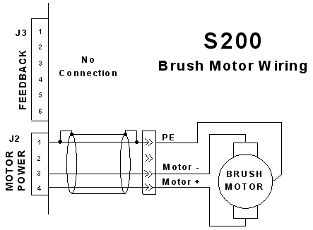 S200: Configuring with Brush MotorsTo drive a brush motor, follow the wiring diagram below.
