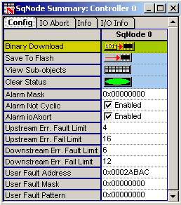 SynqNet FPGA for SLICE I/OIMPORTANT! If you are using the SynqNet Network Adapter (TSIO-1001), FPGA version C0FE0032_0346.sff or newer must be installed on the controller. The FPGA can be downloaded using Motion Console under the SqNode Summary window. The FPGA type and version can be found under the Info tab of the SqNode Summary window.