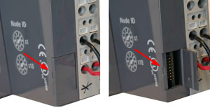 Open the pin interface door on the Slice I/O SynqNet Network Adapter.