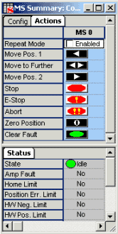 Click on the Move Pos. 1 button To continuously move back and forth from Position 1 to Position 2, check the Enabled check box in the Motion Supervisor Summary window.