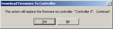 When the verification window appears, click Yes. It will take approximately 30 seconds to download the firmware to the controller.