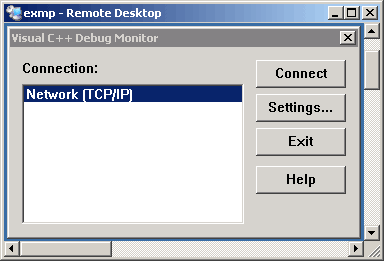 You will also need to install the remote debugger monitor on the target system (eXMP). For more information, click here. Then run the debugger monitor on the target system (eXMP) with the TCP/IP option: msvcmon –tcpip