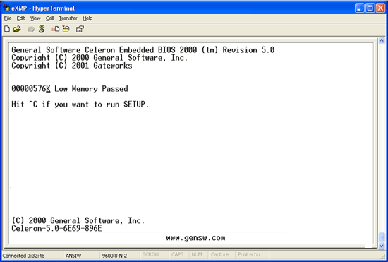 Setting the Date and Time using HyperterminalVxWorksIf you need to Set the Date and Time for an eXMP-SynqNet running VxWorks, use a HyperTerminal session. If you do not know the IP address or name of the eXMP, use the console port and HyperTerminal to set the time and date via the BIOS. Follow the steps below: 1. Reboot the eXMP.