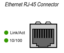 Ethernet LEDsThe Ethernet port has two LEDs: Link/Act and 10/100. The Link/Act LED should be ON at each end of the Ethernet cable. If the Link/Act LED is not ON, it usually indicates that there is a bad connection or a bad cable. See the table below for the meaning of each LED and its state.