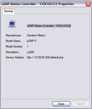 Create Memory DumpThe Create Memory Dump utility is used for troubleshooting the eZMP system. This utility dynamically generates a ZIP file, memoryDump.zip, that can be downloaded for later review. memoryDump.zip contains version information about the motion controller and the MPI library returned from the MPI Version Utility, a memory dump of the controller memory returned from the MPI memoryDump Utility, and a list of all processes running on the eZMP using the Windows tasklist command-line utility. Change Model DescriptionThe Change Model Description utility allows you to change the description of the eZMP that is displayed in the Model Description field of the System Information table. The model description is also displayed in the Comments column in the My Network Places explorer window and as the Description field in the eZMP properties window. This is useful for easily identifying different eZMP controllers on the network. The eZMP properties window can be viewed by opening My Network Places, right-clicking on the eZMP Motion Controller icon, and selecting Properties. To change the model description for an eZMP, open the eZMP landing page and click the Change Model Description link. A text input box will appear below the link (circled below). Enter the new model description in the input box and click finish.