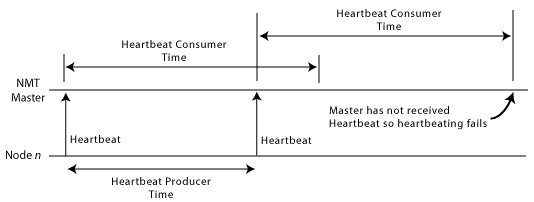 In the Heart Beating protocol, each node periodically broadcasts a heartbeat message. The period between transmitting the heartbeat messages is half the health period. If the XMP does not receive a message within a specific time window, it generates a heartbeat error for that node. The advantage of the Heart Beating protocol over the Node Guarding protocol is that the number of messages is reduced in half, thereby freeing up bandwidth for other messages.