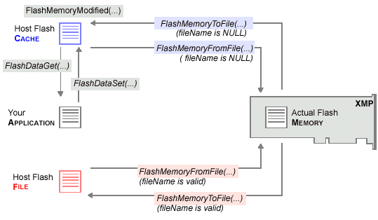 Use the meiFlashDataGet/Set methods to move data between your application and the flash cache. Use the meiFlashMemoryToFile and meiFlashMemoryFromFile methods to move data between the flash cache (or file) and the actual flash memory. Typically, your application would: