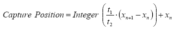 Because the time-based capture uses linear interpolation between two successive controller sample periods, there can be capture inaccuracies during very high acceleration or deceleration trajectories. The maximum capture position error can be calculated from: Max Capture Position Error = 1 / 8 * Accel * (1 / Sample Rate)² For example, suppose the axis is accelerating at 10,000,000 counts/sec² and the controller sample rate = 2kHz (default). Max Capture Position Error = 1 / 8 * 10,000,000 * (1 / 2000)² Max Capture Position Error = 0.31 counts Position-based Capture vs. Time-based Capture There are two capture types: Position-based and Time-based. The capture methodologies for these types differ and can affect performance. The table below summarizes Position-based and Time-based methodolgies and their best use.
