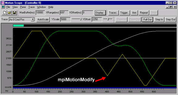 If jerkPercent is zero, the jerk value is computed so that the maximum acceleration is reached in one sample period. With the S-Curve algorithm, the time for a move would not change as jerkPercent value was varied. This is also true for this S-Curve algorithm, as long as the move reaches maximum velocity. In short moves, where maximum velocity is not reached, setting jerkPercent to be small will result in a quicker move than if you were to set jerkPercent to be large. WARNING! The same jerkPercent values may cause different profiles with the special S-Curve Jerk algorithm (implemented in firmware that supports the MPIMotionTypeS_CURVE_JERK move type) than with the standard S-Curve algorithm (implemented in firmware that does not support the MPIMotionTypeS_CURVE_JERK move type). This is because the special S-Curve Jerk algorithm treats the commanded acceleration as a maximum value, not to be exceeded. The new S_Curve algorithm behaves similarly to the previous algorithm, except for its attributes. MPIMotionAttrMaskDELAY can now be used with any start motion, but never with motion modify. MPIMotionAttrMaskAPPEND can be used with any motion, as long as it is not preceded by a motion that has a final velocity. MEIMotionAttrMaskNO_REVERSAL returns a MPIMotionMessagePROFILE_ERROR if the given specifications would result in a move with a reversal, thereby preventing the move from being executed. MPIMotionTypeTRAPEZOIDAL, MPIMotionTypeS_CURVE, and MPIMotionTypeS_CURVE_JERK MPIMotionAttrMaskRELATIVE, when used with MPIMotionTypeTRAPEZOIDAL, MPIMotionTypeS_CURVE and MPIMotionTypeS_CURVE_JERK means that the final position is relative to the beginning position of the motion. MEIMotionAttrMaskFINAL_VEL can be used with MPIMotionTypeTRAPEZOIDAL, MPIMotionTypeS_CURVE and MPIMotionTypeS_CURVE_JERK, but should be used with caution as it may not be possible for the controller to compute a trajectory to meet these criteria, which would cause a MPIMotionMessagePROFILE_ERROR to be returned, and the move to be ignored. Multi-Axis Motion Neither MPIMotionAttrMaskSYNC_START nor MPIMotionAttrMaskSYNC_END MPIMotionAttrMaskSYNC_START or MPIMotionAttrMaskSYNC_END but not both Both MPIMotionAttrMaskSYNC_START and MPIMotionAttrMaskSYNC_END MPIMotionTypeVELOCITY MPIMotionTypeVELOCITY moves allow a final velocity to be specified without a final point. MPIMotionAttrMaskSYNC_START and/or MPIMotionAttrMaskSYNC_END MEIMotionAttrMaskFINAL_VEL MPIMotionAttrMaskRELATIVE