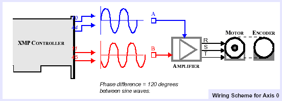 Two-phase / Four-phase Brushless Motor OperationThe MEI motion controller can also be used to control two-phase or four-phase brushless servo motors. The only difference, from the perspective of the controller, is that the phase separation between the A and B phase is 90 degrees rather than 120 degrees. This is easily changed by a single line in software (see parameter PhaseDelta), or within Motion Console’s Motor Object: SinCom tab. In general, the XMP can control any poly-phase motor/drive combination requiring two sinusoidal analog inputs. Contact MEI for more information. Hardware ConsiderationsSelect Your Amplifier CarefullyMEI recommends that you carefully select the amplifier to be used for sinusoidal commutation applications. Linear amplifiers are attractive for their high precision, absence of zero-crossing current ripple, and low noise characteristics. PWM drives are generally favorable from a cost, package volume, efficiency, and waste/heat perspective. At MEI, the top five amplifier-related problems that our customers have when developing a sinusoidal commutation application are: