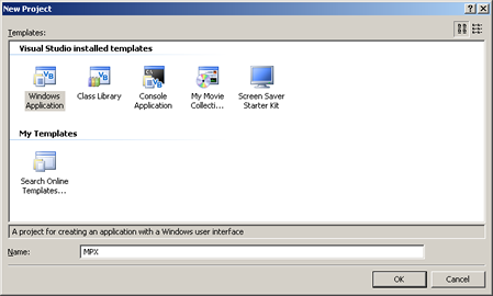In the New Project window, select Windows Application, name the project “MPX”, and then click OK. Save the form by going to File > Save Form1.vb, or press Ctrl + S.
