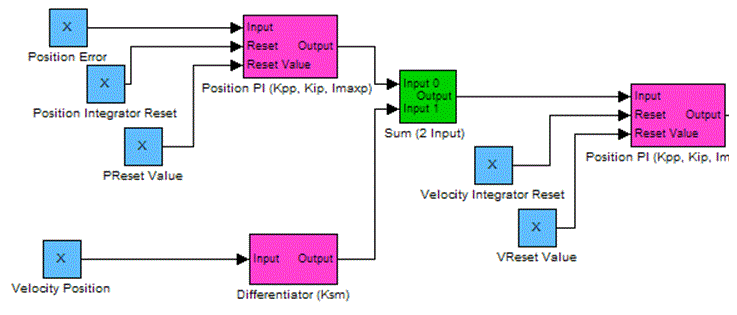 OverviewOverviewThe PIV with Gain Table block implements PIV control. There is an inner Velocity Loop and an outer Position Loop. Additionally, there is a PI compensator for both Velocity and Position Loop. All parameters are entered into gain tables. Velocity, Acceleration, and Friction Feed Forward are also supported. There is a table for each parameter and each table has five elements. The gain index input determines which table element is used for each specific parameter. The coefficients for this block are as follows: