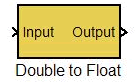 OverviewOverviewThe Double To Float conversion block is useful when an internal memory structure’s data type cannot be changed, but is needed in a different data type. The configuration values for this block are as follows: