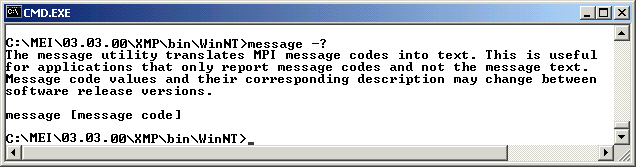 The Message Utility will translate MPI message codes into text. This is useful in case an application only reports an error code and not the associated message. NOTE: Error code values and their corresponding description may change from one software release version to the next.