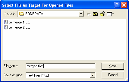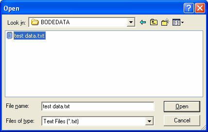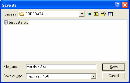 You need to create a file to hold the merged data from all of your individual bode plots. This is usually a new file. Note: If you select an existing file, it will be overwritten. Click Save.