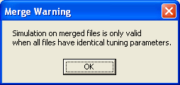 Note: A warning will pop up telling you that, if you want to simulate tuning on the merged file, you need to ensure all the merged files have identical tuning. Click OK.
