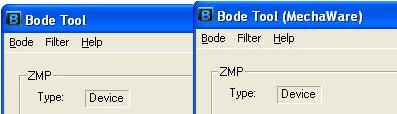 Note: As shown below, if the Bode Tool window indicates Bode Tool, this is for Standard Firmware. If the Bode Tool window indicates Bode Tool (MechaWare), this is for MechaWare Firmware. For more information about viewing and changing filter parameters for MechaWare Firmware, see Filter Tool - MechaWare FirmWare.