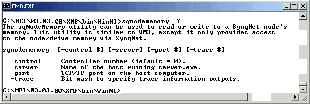 ExamplesC:Mei\03.03.00\Xmp\Bin\WinNT>sqnodememory -control 1