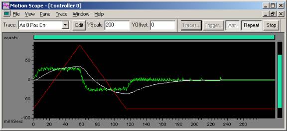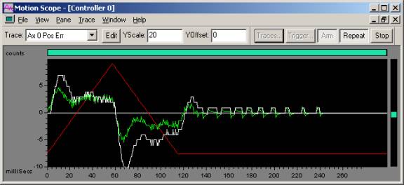 You can see that the position error plot goes off scale because we have not set the scaling yet. Adjust the Y Scale until you get the view you want.